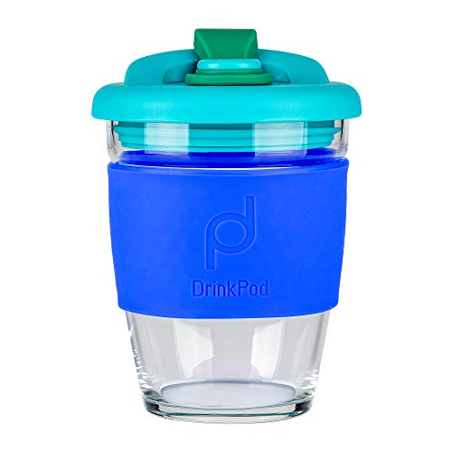 DrinkPod återanvändbar BPA-fri 340 ml 12 oz kaffekopp/resemugg av glas – OCEAN, BLAU