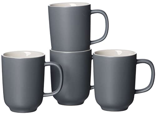 MÄSER Serie Niara, modern kaffekopp, set om 4 med spännande vintage-glasyr, stora kaffekoppar av keramik, stengods, grå/svart, 465