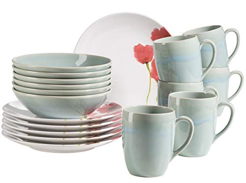 MÄSER 931927 Ossia Aguarela, porslinsset för 6 personer i delvis dekorerad vintagelook, 18-delars frukostset i keramik med frukosttallrik, flingskål och kaffekopp stor, vallmoblomma, stengods