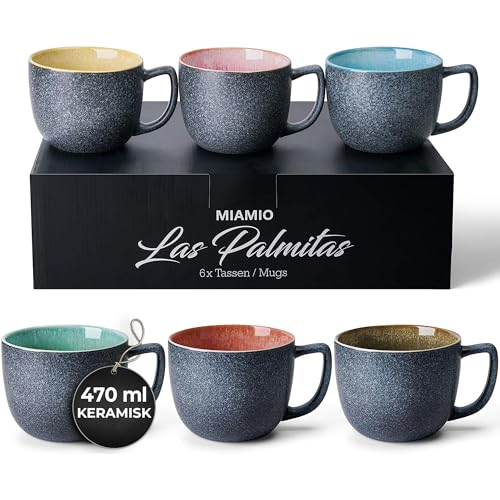 MIAMIO - 6 x 470 ml kaffekoppar/muggset/kaffekopp stora/moderna kaffemuggar i stengods - Las Palmitas Collection Set om 6