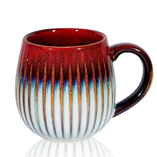 ZPPLD Kaffekopp stor, keramik, 500 ml, retro, cappuccinokopp med handtag, stengods, konstnärdesign, diskmaskinssäker