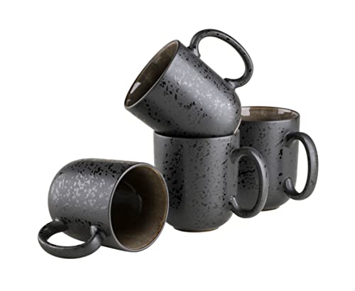 MÄSER Serie Niara, modern kaffekopp, set om 4 med spännande vintage-glasyr, stora kaffekoppar av keramik, stengods, grå/svart, 465