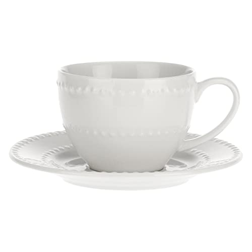 H&H Silhouette Pack 6 kaffekoppar, med fat, Stoneware, Vit, 30x21x11 cm, 6 enheter