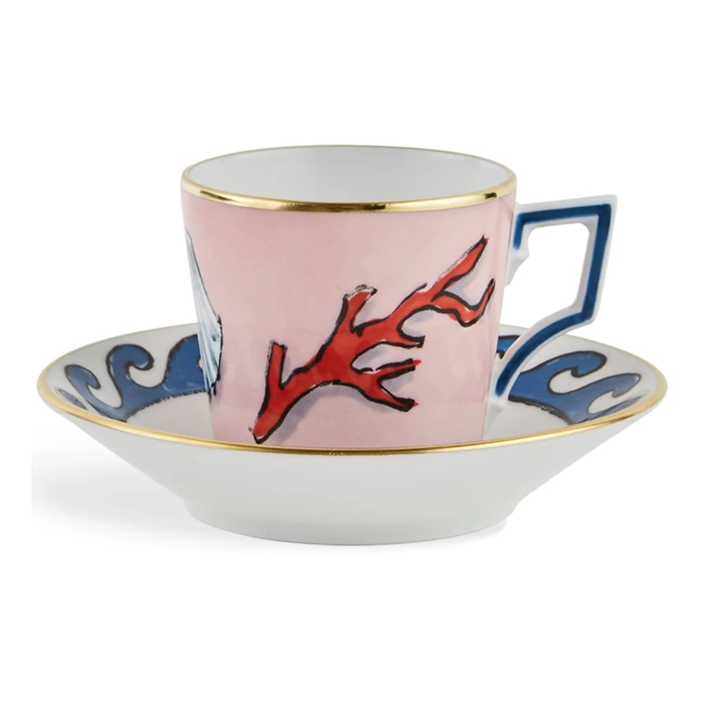 Excelsa , Porslin, Set med 6 Trinacria kaffekoppar med fat, flerfärgad