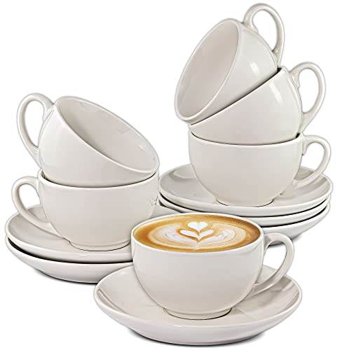 Cosumy Cappuccinokoppar Set 6 pack med Fat Vita – Keramik Kaffekoppar 180 ml – Håller Länge Varmt – Stapelbara & Diskmaskinssäkra – Presentförpackning