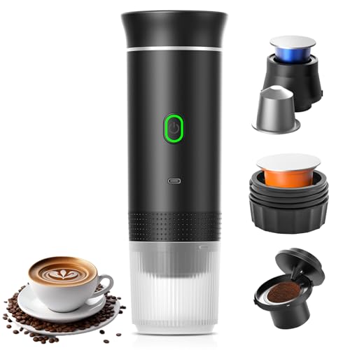 Aischens Bärbar Mini Espressomaskin,Eluppvärmd Resekaffebryggare för Bil med USB-C,Kompatibel med NS-kapslar och Malet Kaffe,Kompakt Kaffemaskin för Camping,Kontor och Vandring