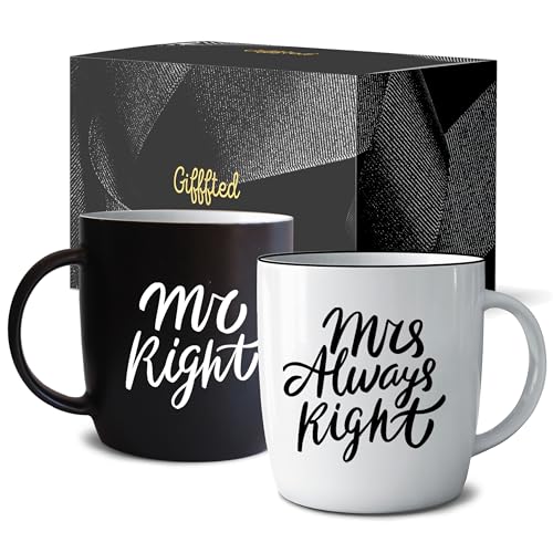 Triple Gifffted Mr Right Mrs Always Right kaffemuggar presentidéer för par, bröllopsdag, förlovning, jul, hans och hennes, brud och brudgum, föräldrar, nygifta möhippa, keramik 380 ml