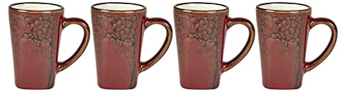 MÄSER 935133 serie Teona, set med 4 kaffemuggar med grönbrun reaktiv glasyr, 4 stora kaffekoppar av keramik i modern diskret coupe-form, stengods, 340