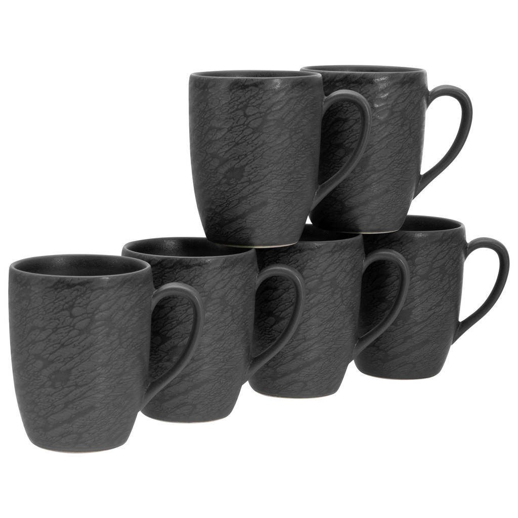 MIAMIO Set med kaffemuggar/kaffekoppar i stengods, 6 x 350 ml, Le Papillon Collection (svart)