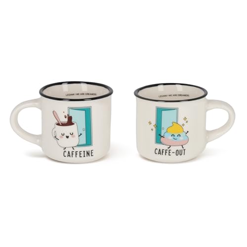 LEGAMI Espresso för två kaffemuggar, set med 2 New Bone China porslinsmuggar, diskmaskinssäker kaffekopp, Poo-tema, diameter 5,5 cm, 50 ml kapacitet
