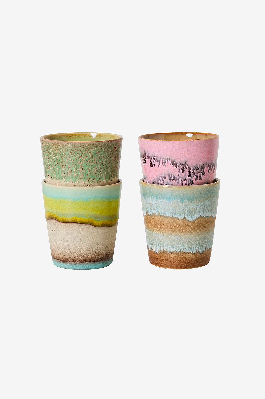 HKliving - 70-talskeramik: kaffemuggar, Pop Art (set om 4) - Flerfärgad