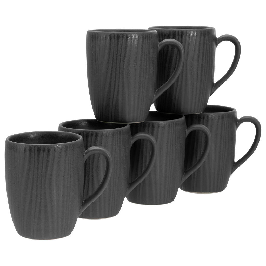 Cosumy Kaffemugg Set om 6 - Kaffemuggar Svart - Unikt randigt mönster - Matt keramik - Mikrovågsugnssäker - Diskmaskinssäker & bekvämt handtag