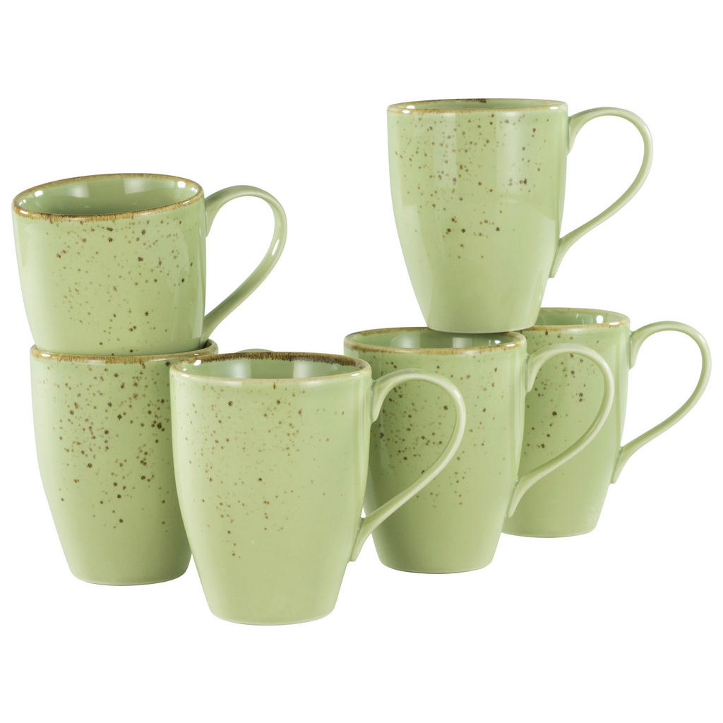 vancasso Stjärniga kaffemuggar set med 6, 480 ml stengods kaffemugg med handtag, tekoppar för kakaomjölk, mikrovågsugn och diskmaskinssäker, grön