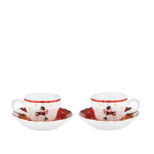 Kasanova Set med kaffemuggar med snögubbe i porslin, 2 st röd