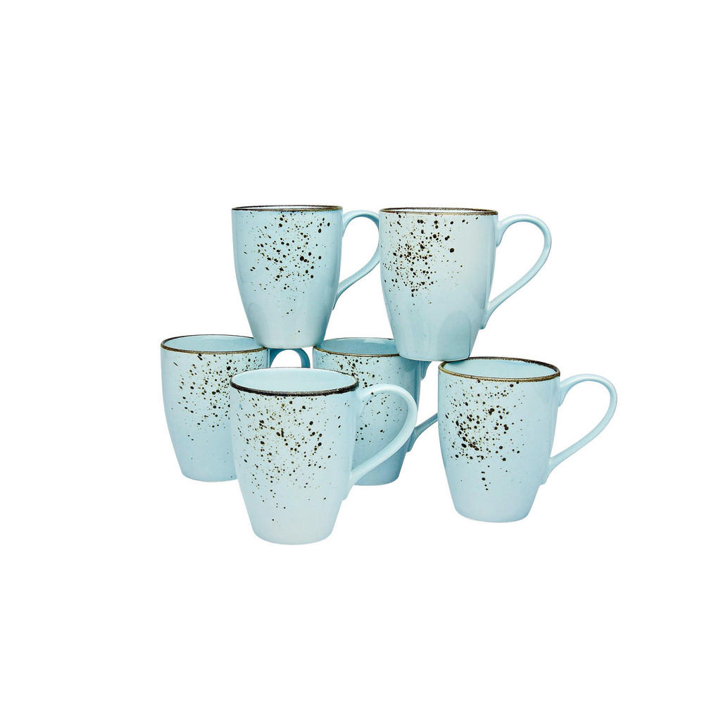 Joeji's Kitchen Färgade kaffemuggar set med 6 stengods temugg set 350ml för att hålla kaffe te choklad och andra drycker varma eller kylda längre