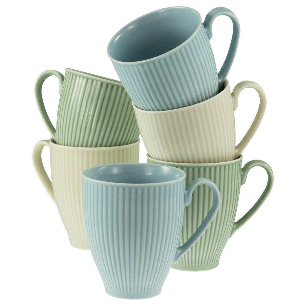 Cosumy Kaffemugg Set om 6 - Kaffemuggar Pastell - Unikt randigt mönster - Matt keramik - Mikrovågsugnssäker - Diskmaskinssäker & bekvämt handtag