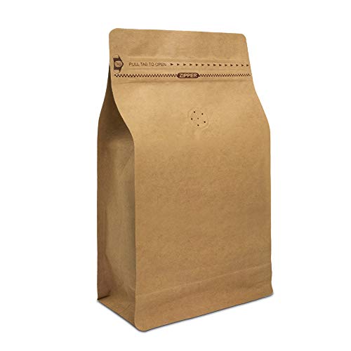 Naturliga kraft-kaffepåsar, återförslutningsbar kaffepåse med ventil, platt botten dragflik dragkedja (50 st, 16 oz, 0,5 kg, 454 gram)