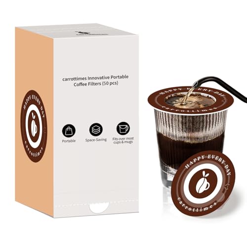 carrottimes 50 st Engångskaffefilter, Portabel Pour Over, Hängande Engångs Kaffepåse, Enkel Serveringskaffe eller Te, Perfekt för Resa, Camping, Kontor, Hem (Brun)