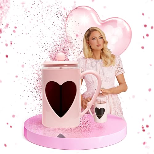 FACKELMANN Paris Hilton – fransk press i hjärtdesign 1L – kaffepress av glas och plast med rostfritt stålfilter, cool-touch-handtag, droppfri, temperaturbeständig