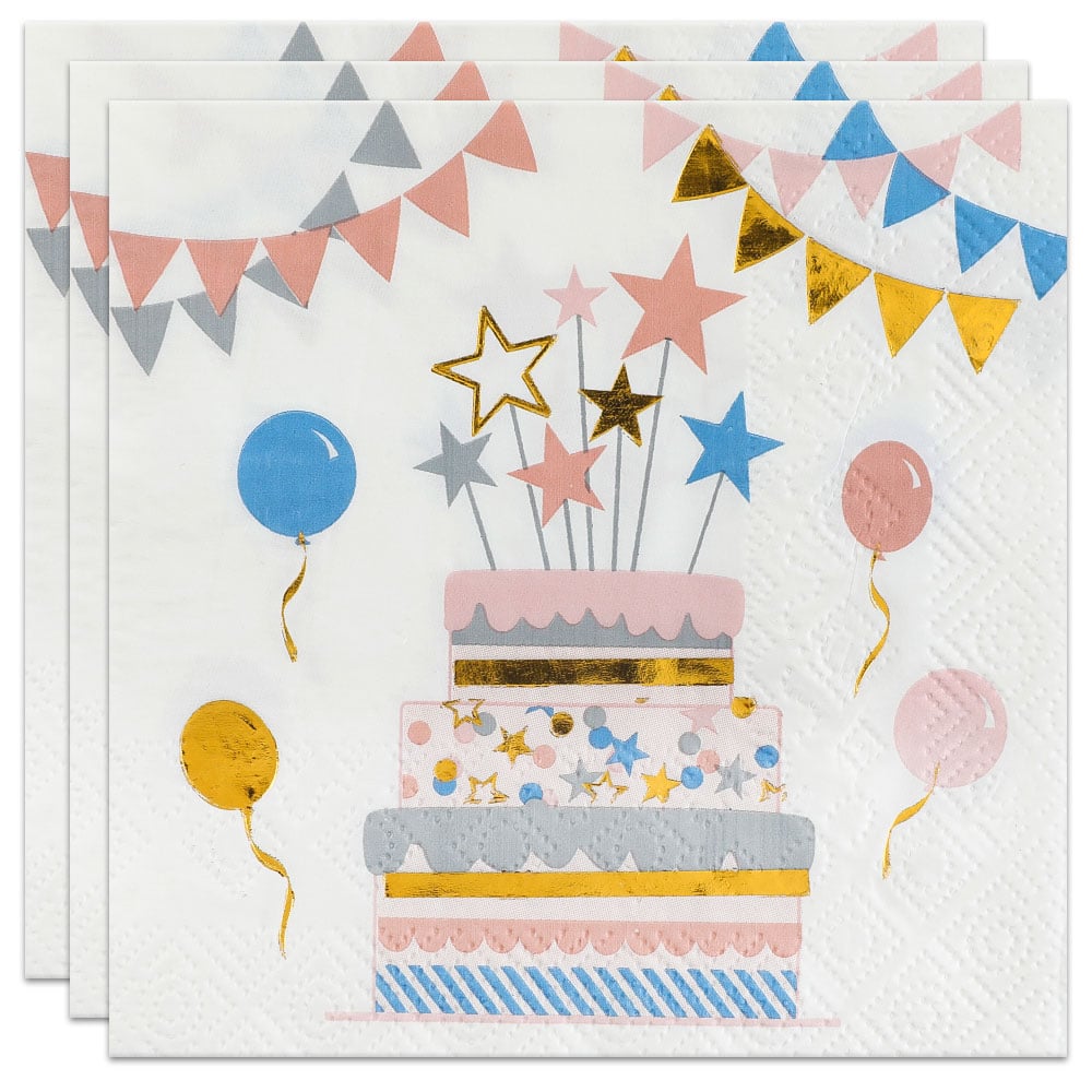Kaffeservetter Ballonger Happy Birthday Pastell 20-pack