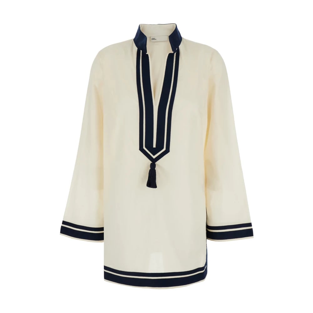 Tory Burch, Blusar & Skjortor , Dam, M, Bomull, Kaftan med kontrasterande detaljer och tofs