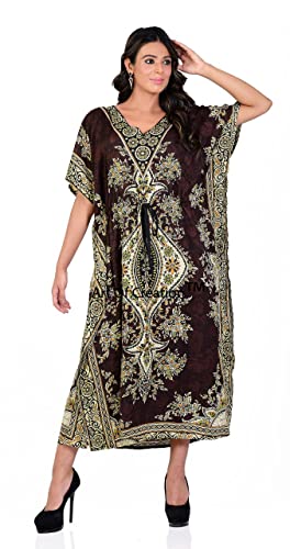Art Of Creation damer långa kaftaner kimono maxistil klänningar kvinnor normal till plusstorlek täckning, Krater brun, L
