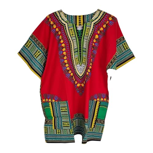 KIRAN FASHION 100 % bomull unisex Dashiki Afrika tribal tryck festival kaftaner blus sommar topp, Röd, One Size Plus