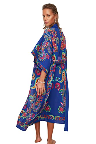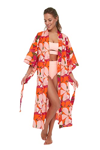 Trendyol V-ringad tyg kaftaner och kaftaner för kvinnor, Mycket färgglad, L