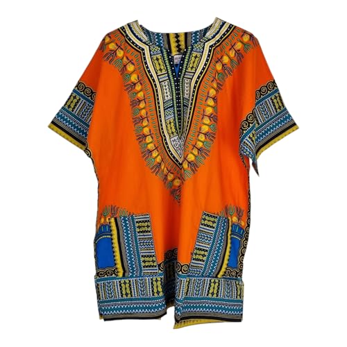 KIRAN FASHION 100 % bomull unisex Dashiki Afrika tribal tryck festival kaftaner blus sommar topp, Orange, One Size Plus