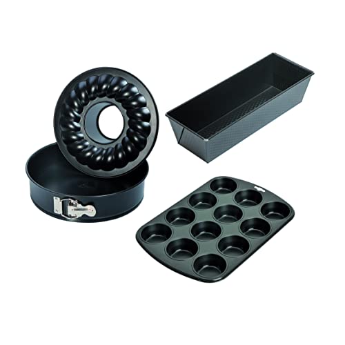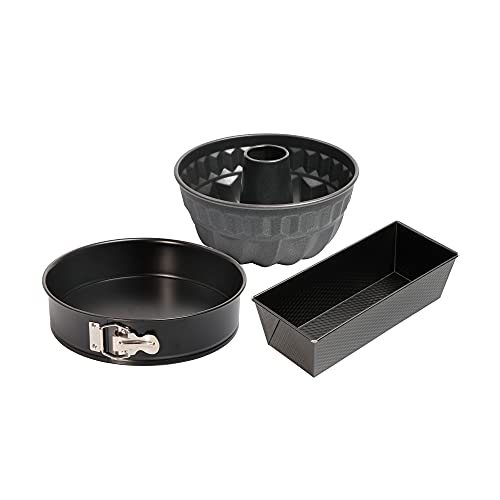 Original Kaiser Classic bakformar bakset 3 delar, springform med platt botten, Gugelhupf bakform, kungskaka form, kakform set nonstick belagd, svart