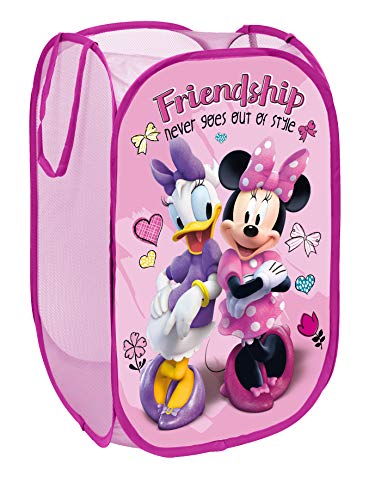 SUPERDIVER - Hopfällbar Förvaringskorg Mimmi Pigg & Kajsa Anka - Officiell Licens Disney - Perfekt för Leksaker & Kläder - 36x36x58 cm - Enkel att Använda & Förvara - Idealisk för Barn.