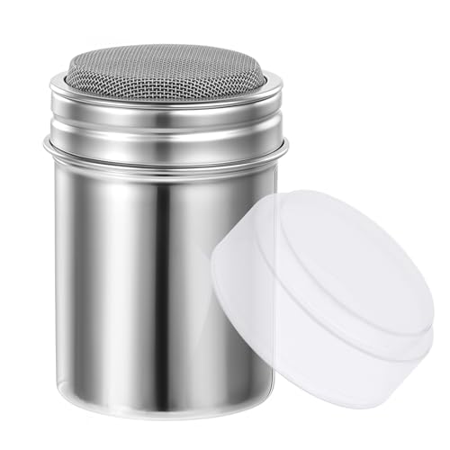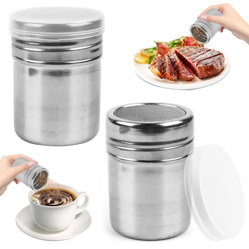 2 stycken ströare av rostfritt stål, pulversockerströare med plastlock, kakaoströare cappuccino, pulverströare, dammsocker, pudersocker, sil mjölströare för kakao, kaffe, choklad, socker, salt