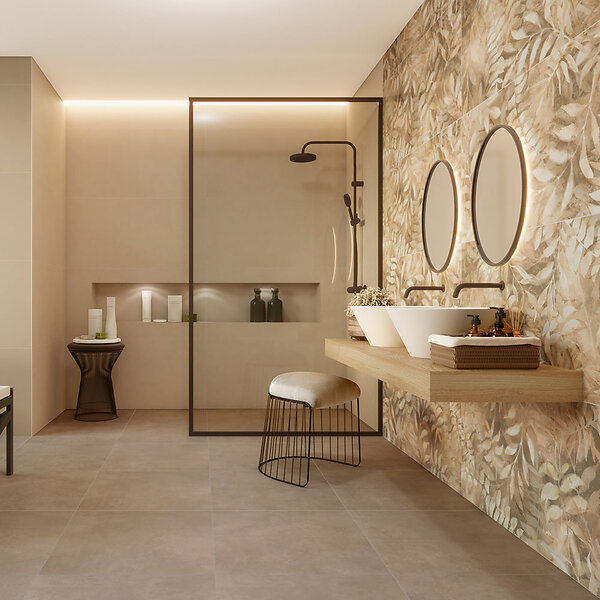 Hill Ceramic Blommigt Kakel Botanical Beige Matt 60x120 cm