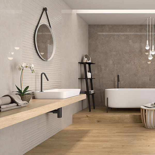 Hill Ceramic Kakel Rioja Beige 31x56 cm Blank Beige-Grå Blank-relief KLR2549