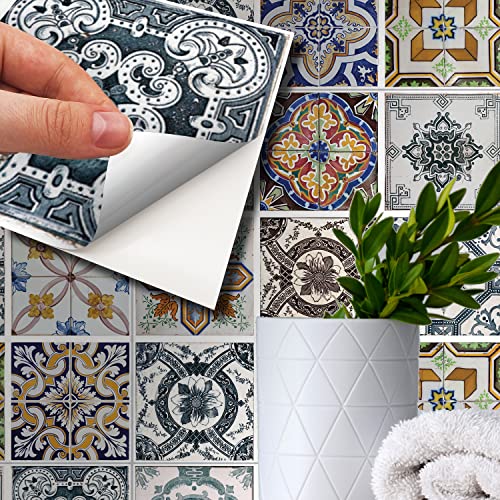 WALPLUS 15 cm (6 tum) 24 st kakelklistermärken Corfu färgglad medelhavsskala och klistra bakstänk självhäftande dekal vinyl heminredning gör-det-själv stänkskydd vårpåsk dekoration kakel färg klistra på plattor