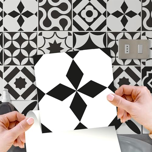 WALPLUS 24 stycken 15 x 15 cm mörkgrå spansk renässans grå vit väggkakel dekal skala och klistra baksplash dekaler startsida dekor kantning för kök badrum kakel färg på