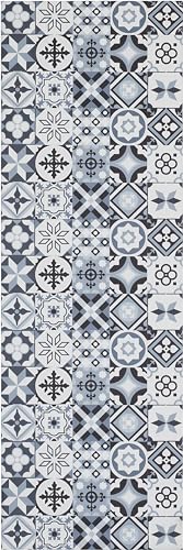 andiamo Löpare, hallmatta, kök, tvättbar, halkfri, PVC, testad för skadliga ämnen, kakel och ornament, kökslöpare orientalisk, färg: grå, storlek: 50 x 150 cm