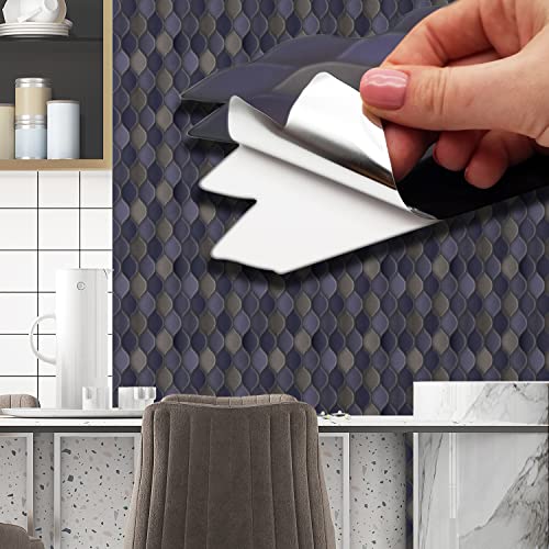 WALPLUS 28,5 x 14 cm @ 48 st mörkblå och grå bikakestruktur hexa vägg kakel klistermärke stänkstänk kakel färg klistra på plattor skala och klistra fast självhäftande väggplattor klistermärken för kök badrum kakelöverföring