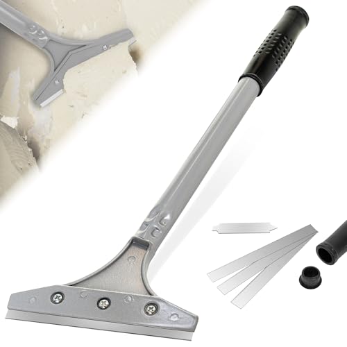 BLOSTM 5 tum tapetskrapa – långt handtag slitstarkt skrapverktyg med 13 cm blad och mjukt grepp, brett huvud kakelskrapa tar bort tapeter, vinylgolv, kakel, färg och mer - inkluderar 3 reservblad