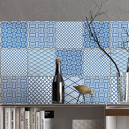 Självhäftande klistermärken kakel | klistermärke cementplattor - mosaik väggplattor badrum och kök | cementplattor vägglim - Azulejos 15 x 15 cm - 15 stycken