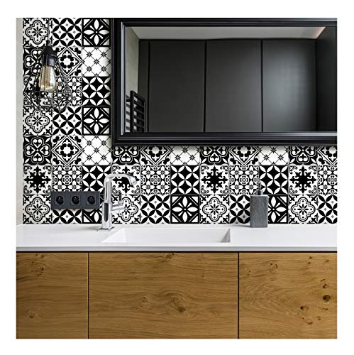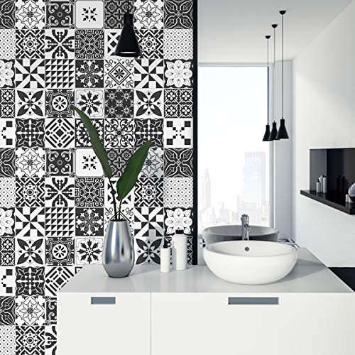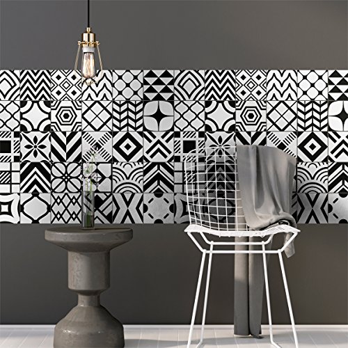 Ambiance-Live col-tiles-ROS-A829_15x15 cm självhäftande klistermärken kakel, vinyl, svart och vit nyans, modern 15 x 15 cm Väggdekor