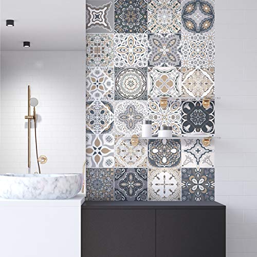 Ambiance Självhäftande klistermärken kakel | klistermärke cementplattor - mosaikplattor badrum och kök | cementplattor väggplattor - azulejos 15 x 15 cm - 30 stycken