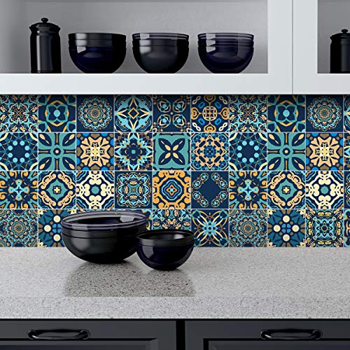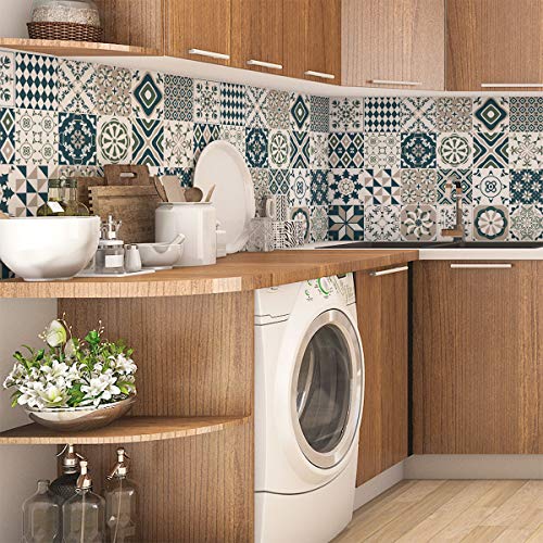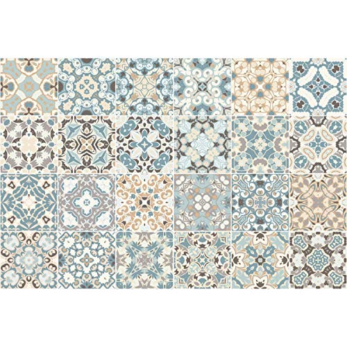 30 självhäftande klistermärken kakel | Klistermärke cementplattor - mosaik väggplattor badrum och kök | cementplattor väggklistermärken - azulejos - 20 x 20 cm - 30 st