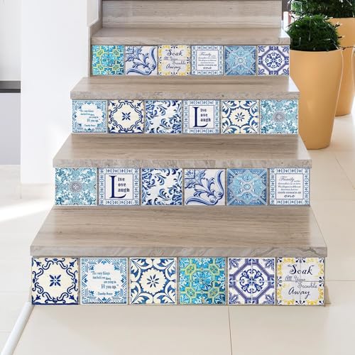 WALPLUS 15 cm (6 tum) 24 st engelskt citat vintage blå vägg kakel klistermärken dra bort och klistra fast backsplash självhäftande vinyl heminredning gör-det-själv vardagsrum sovrum stänkskydd för kök kakel målning klistra på plattor