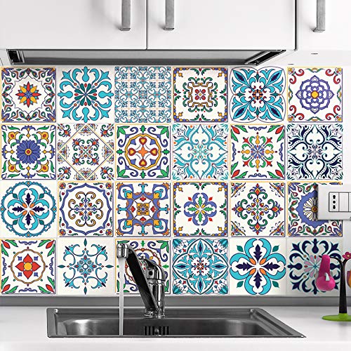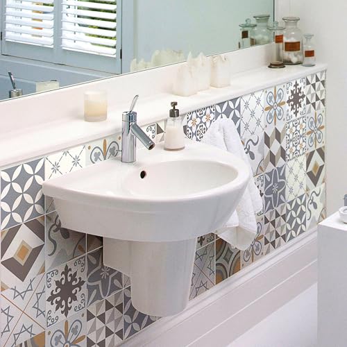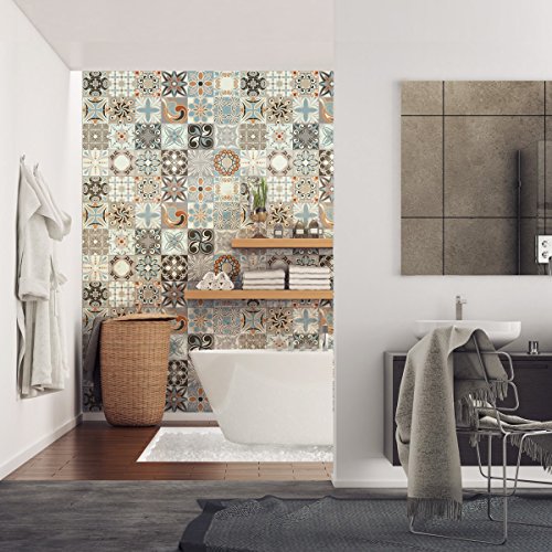 Ambiance-Live 24 klistermärken kakel | klistermärken självhäftande kakel – mosaik kakel väggtatuering badrum och kök | kakel lim – portugisiska – 10 x 10 cm – 24 delar