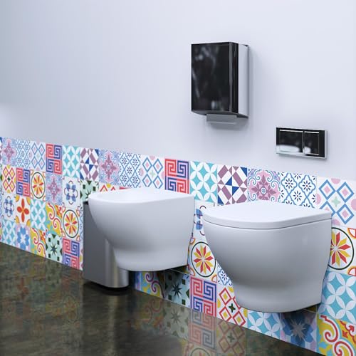 60 självhäftande kakel lim kakel klistermärken | Klistermärke – Väggplattor badrum och kök mosaikplattor 10 x 10 cm flerfärgade – 60 delar –