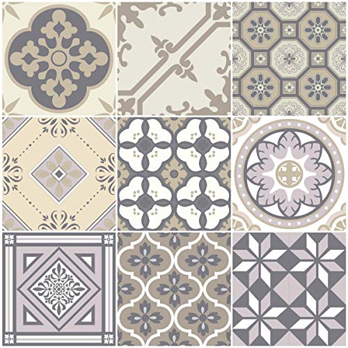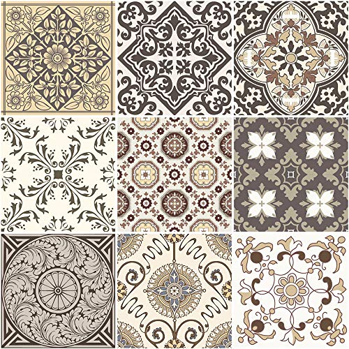 Klistermärken kakel | Klistermärke klistermärken cementplattor - mosaik väggplattor badrum och kök | cementplattor vägglim - Azulejos 15 x 15 cm - 9 st