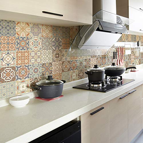 60 klistermärken kakel | klistermärken självhäftande plattor – mosaikplattor väggtatuering badrum och kök | kakel lim – flerfärgad vintage konstnärlig – 10 x 10 cm – 60 stycken