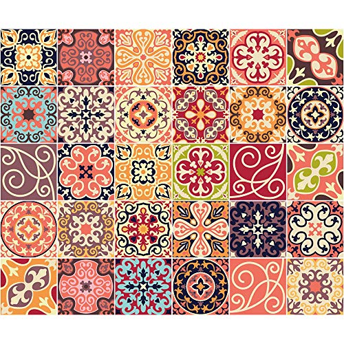 Ambiance-Live col-tiles-ROS-A909_15x15 cm självhäftande klistermärken kakel, flerfärgad, 15 x 15 cm, set med 30 stycken