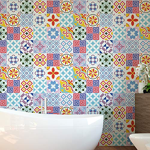 60 klistermärken kakel | Sticker självhäftande kakel – mosaik kakel väggtatuering väggdekor badrum och kök | kakel lim – flerfärgad elegant – 10 x 10 cm – 60 delar